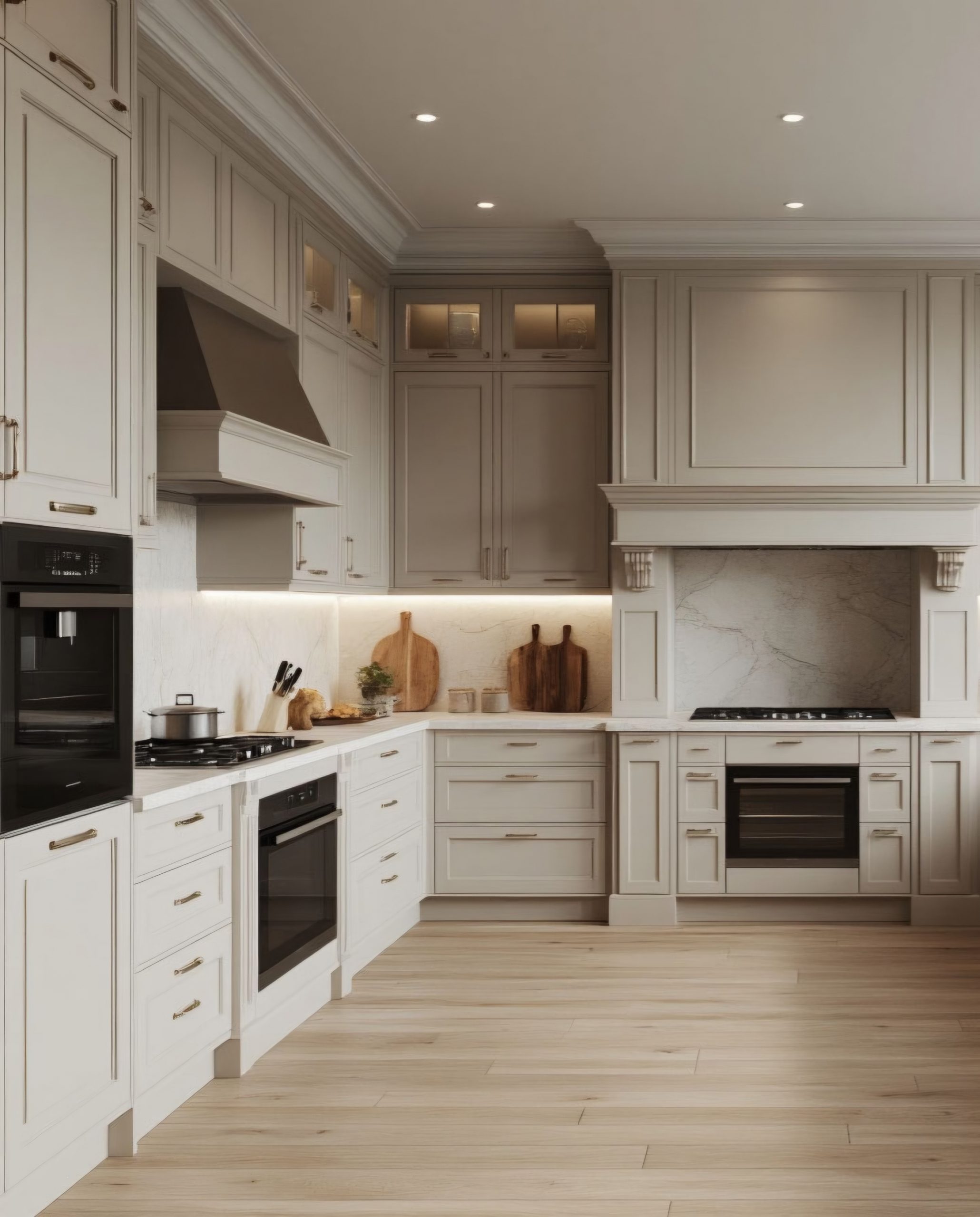 «Бежевая симфония» — изысканный мебельный комплекс для кухни, сочетающий элегантность неоклассики с современной функциональностью. Этот интерьер превращает кухню в пространство гармонии, где каждая деталь создана для комфорта и вдохновения.