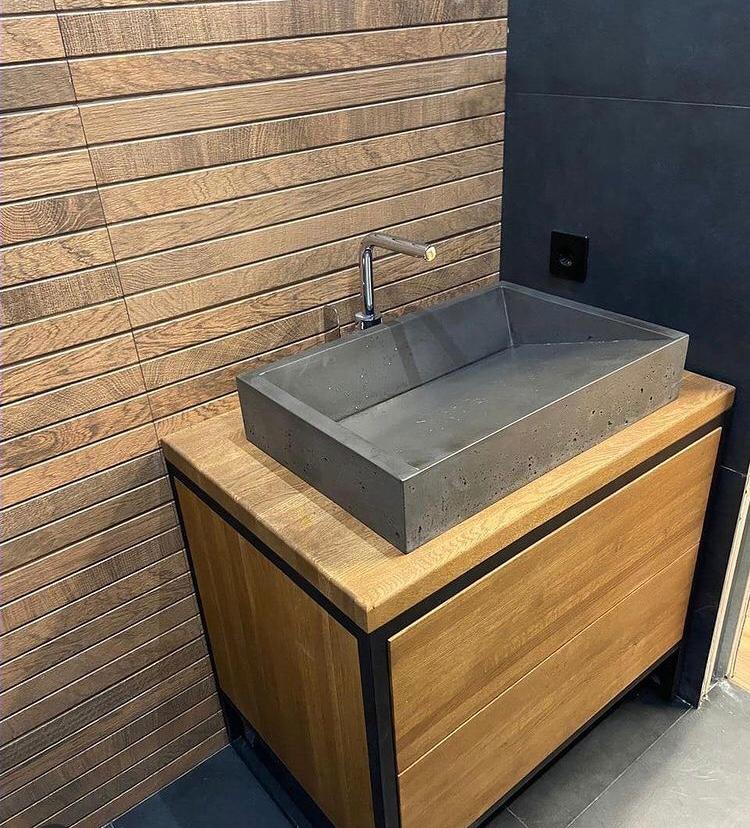 Как и любая другая бетонная раковина, изготовленная вручную, имеет уникальную фактуру и цветовые оттенки.