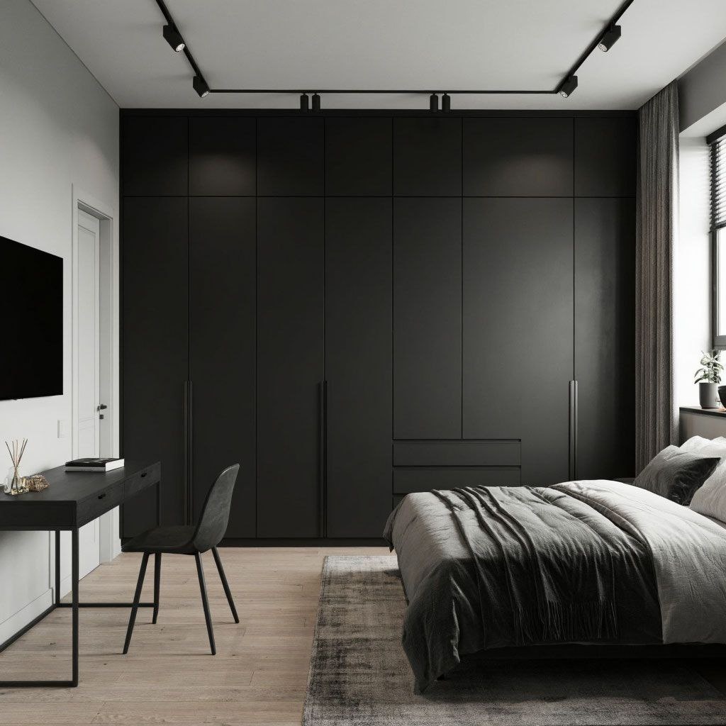 «Чёрная симметрия» — элегантный шкаф для спальни, воплощающий суть современного минимализма и безупречную геометрию пространства. Этот предмет интерьера не просто служит для хранения вещей, но и становится центральным акцентом комнаты, подчёркивая её стиль и создавая атмосферу сдержанной роскоши.